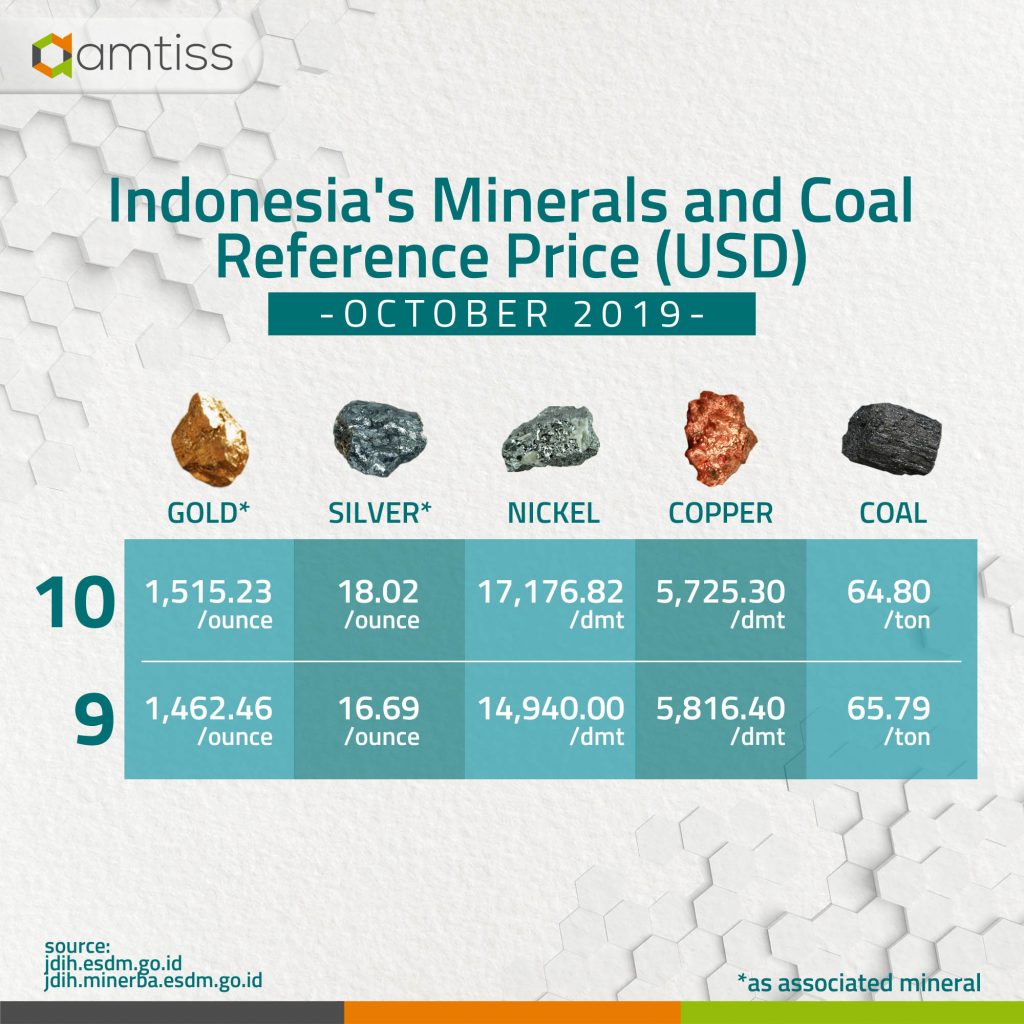 Indonesia’s Minerals and Coal Reference Price for October 2019 has been released by the official website esdm.go.id,
